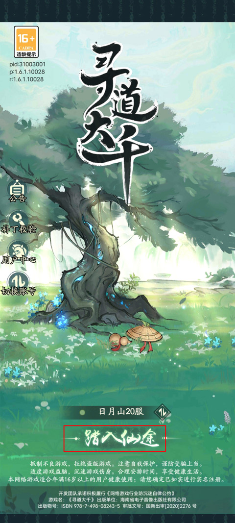 1、打开寻道大千微信小游戏,登录账号后点击“”踏入仙途”进入游戏;