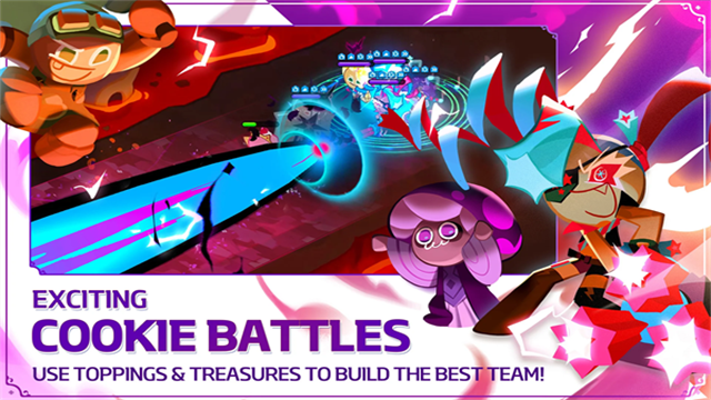 姜饼人王国国际服(Cookie Run: Kingdom)是一款史诗般的城镇建设和冒险角色扮演游戏,由可爱的姜饼人打造的一个全新的趣味世界。游戏中共有8种不同类型的饼干,分别是突击型、防御型、魔法型、奇袭型、恢复型、爆破型、支援型、射击型。玩家们可以自由搭配任意5名饼干出战。