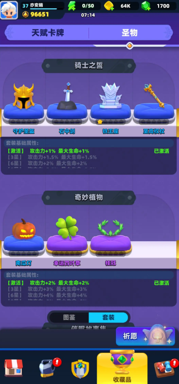 圣物就是纯提供加成和特殊属性的,同时集齐特定宝物也有套装加成,