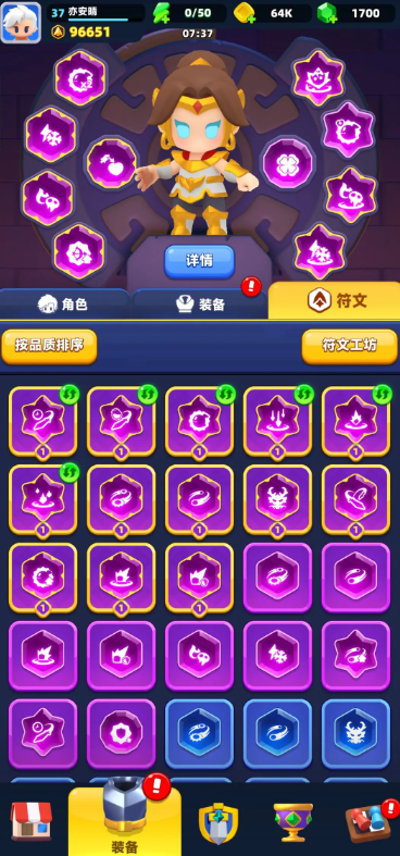 每个符文的品质同装备一样,且升到紫色品质会有不同的效果加成,