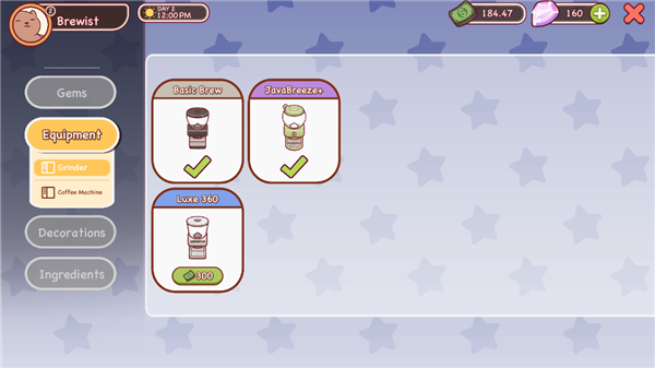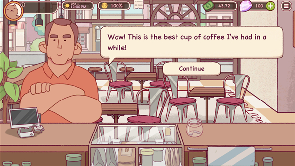 游戏中,玩家们来到咖啡店扮演一位咖啡店长,每天面对不同的顾客,根据它们的需求制作各种美味咖啡系列,你将亲自制作买一杯咖啡,从制作咖啡粉到成品再到顾客手中都由玩家们完成,并获得金币利润、完成任务获得钻石资源。有了足够的金币、钻石可前往商店购买各种饰品,以及改进咖啡馆设备,让你成为一家传奇咖啡店!