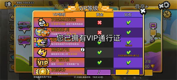 -钻石VIP等级和高级+通行证