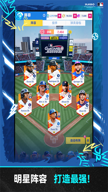 • 全联盟超过2,000名MLB职业球员,球员的真实能力将直接加持比赛。
