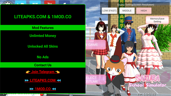 本次带来的樱花校园模拟器内置MOD菜单版是樱花校园模拟器的破解版,内置模组菜单,一键破解全角色。进入游戏探索日本一个迷人而温馨的小镇,干净的街道和友好的人们掩盖了一个只有内行人知道的隐藏秘密:这个地方是一个肆无忌惮的疯狂之地!穿上校服,前往世界上最疯狂的学校,结交朋友,去上课,或者加入帮派,参加荒谬的近战斗殴,这在你疯狂的母校每天都在发生。