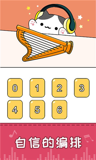 1、通过猫咪手中的乐器进行节拍的弹奏,每个数字都代表着不一样的音符。
