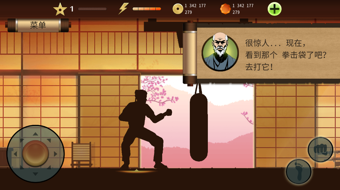 暗影格斗2是一款画面流畅而逼真的格斗手游。游戏以日本为地域背景,搭配日本特有的乐器尺八演奏音乐,以及风格隆重的古典武士,因此该款游戏日本风格比较浓郁。游戏中,玩家将扮演一名影子武士展开一系列的复仇行动,一路上会遭遇各种流派的江湖高手,玩家需要运用好格斗技巧去战胜你的对手。游戏的操作也十分简单,左侧方向键控制移动、跳跃、下蹲、翻滚等动作,右侧为攻击按钮。
