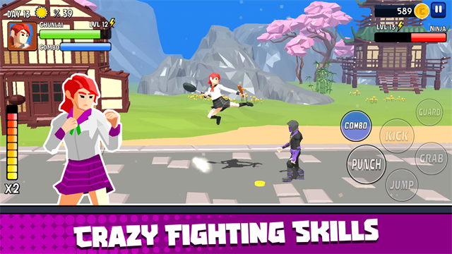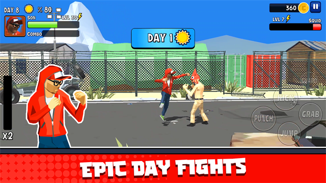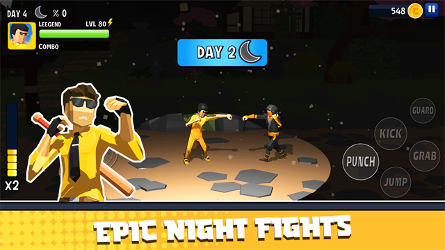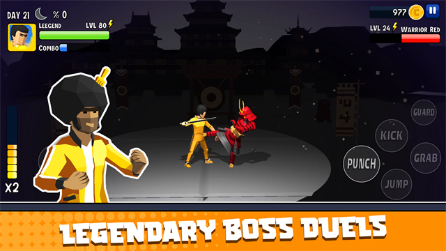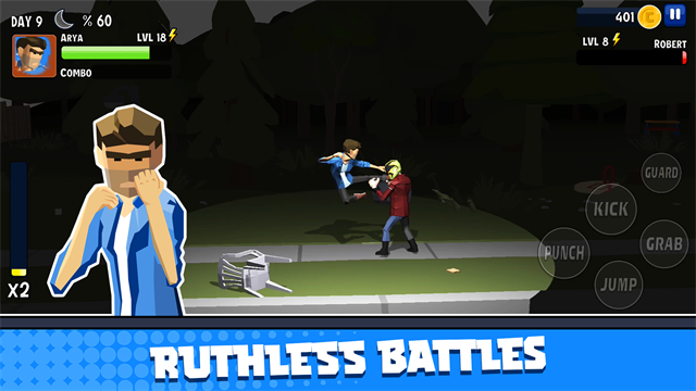 提升你的角色的生命值,打击力,踢腿力和武器技术来击败更强大的敌人。