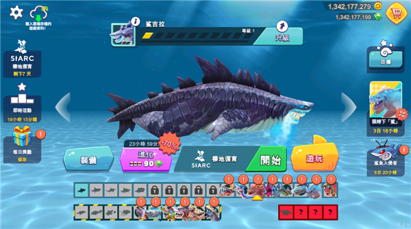 饥饿鲨进化是一款以海洋生存竞争为主题的模拟生存类手游。本站为大家提供饥饿鲨进化2025最新破解版,内置无限钻石、金币资源,可以让玩家任意购买里面的鲨鱼及装备,每一次上线的全新鲨鱼秒购买,直接升级鲨鱼等级为满级,享受极致游戏乐趣!饥饿鲨进化2025最新破解版中玩家通过触控操作鲨鱼在海底场景中吞食小型海洋生物实现体型进化,同时躲避大型鱼类攻击及障碍物,一步步增加自己的体积,成为海洋霸主。游戏官方还将不定期推出新主题活动玩法,参加活动可以获得专属鲨鱼,具体主题内容可前往主界面进行查看!