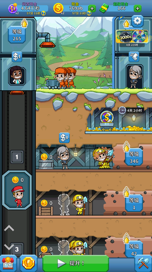 随着采矿获得的利润越来越高,玩家就可以招募更多的员工,开辟新的矿层,然后指派主管,就可以开启自动采矿工作了,正式实现采矿大亨的目标,这也正是游戏放置玩法的最佳体现。