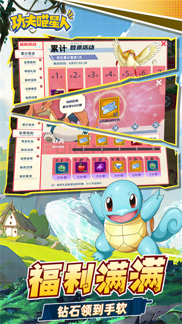 除此之外,功夫喵星人在传统宝可梦的基础上新增了全新的6V6回合战斗玩法,玩家可以根据属性相克来选择每场战斗应该出什么宝可梦,大大增加了游戏的策略性。喜欢宝可梦的小伙伴快来下载体验吧!