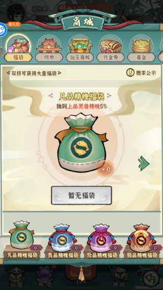凡品精魄福袋,良品精魄福袋,珍品精魄福袋,极品精魄福袋。
