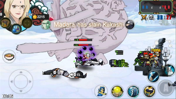注意点:1、灵活运用“诅咒仪式”0.5秒左右的无敌,会有不可忽视的作用!2、注意“诅咒仪式”的范围!3、由于电脑变得聪明了,使得“咒术,死司凭血”的反弹效果不佳,所以要反弹他们残血逃跑时,自杀一次,有2000多伤害,进行补刀!游戏亮点1、火影战记丰富的游戏技能和道具体系,供你挑选。2、多个忍者供您选择,操控你最爱的忍者赢得胜利吧!3、moba类游戏玩法,3V3的对战,以摧毁对方的大本营为目标。4、强大的专属奥义技能,打造潇洒的战斗风格。更新日志v1.22版本修复选人bug,增加更多人物,此版本还能购买装备