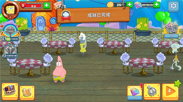 4、妙趣横生的海底世界,和海绵宝贝一同在这个游戏中经营美食。