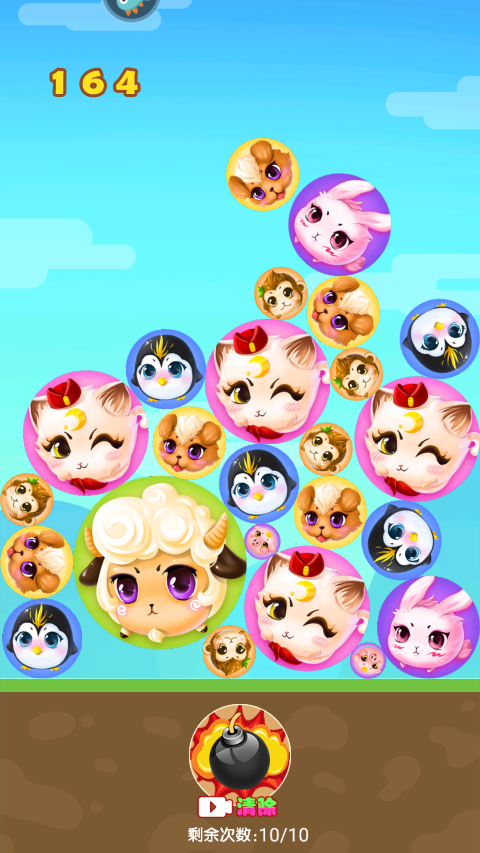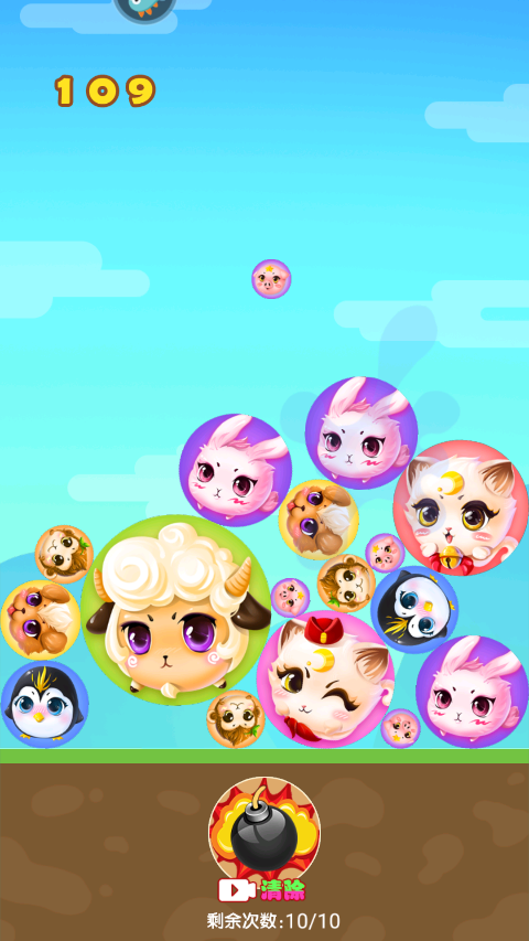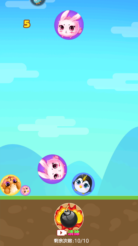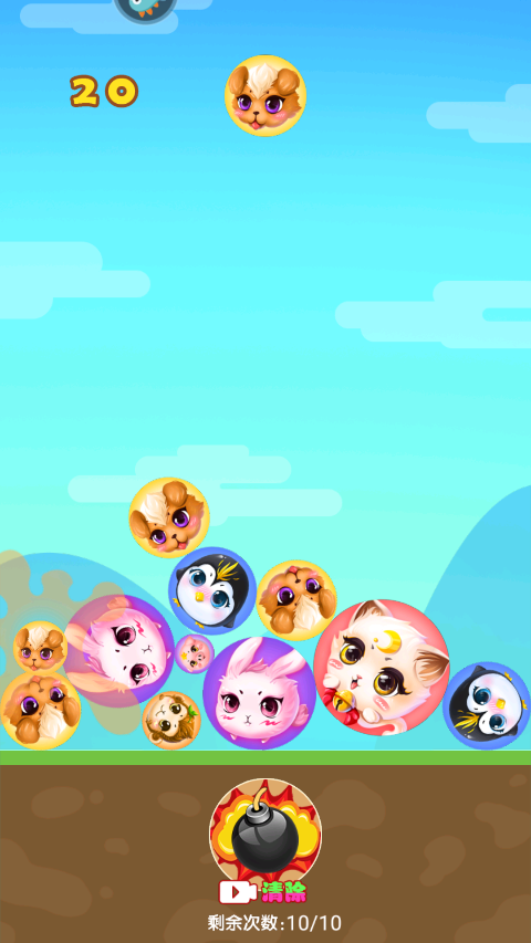 1、移动上方的宠物球球,让它下落到你想要的位置