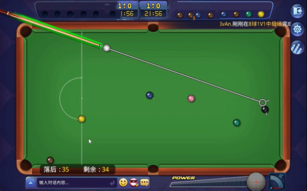 -右上方的母球则是调整击球的角度,花式旋转球便是通过这里来调整击打。加上优秀的物理引擎的运算,完美模拟了真实桌球的打击感和运动感。