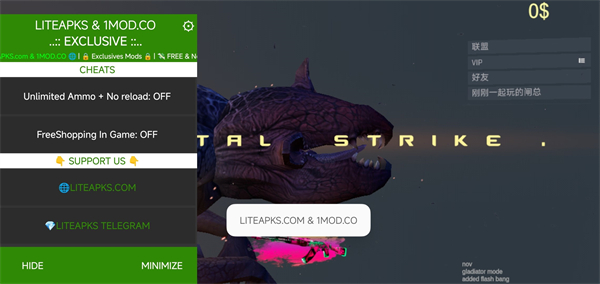 PS:野蛮打击破解版内置菜单MOD,此版本内置MOD菜单,已破解无限弹药,免费购物、从而减小游戏难度,感兴趣的朋友欢迎前来本站下载体验!
