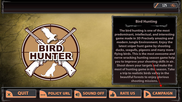 丛林狩猎是一款经典的模拟狩猎游戏,全新的3d画面,丰富的场景,超多优质的特色玩法,让你在游戏中可以不断的进行冒险,还有很多的游戏任务等你去探索。玩家的任务,就是尝试在飞鸟射击中尽可能多地射箭,并让硬币破解新的挑战性关卡,并杀死更多的鸟、鸭、海鸥、鸽子,玩家击杀的猎物越多,评分就越高,所获得的奖励也就更多。游戏还有着各种各样的武器等待着玩家去破解使用,可以用狩猎所获取的金币去购买。