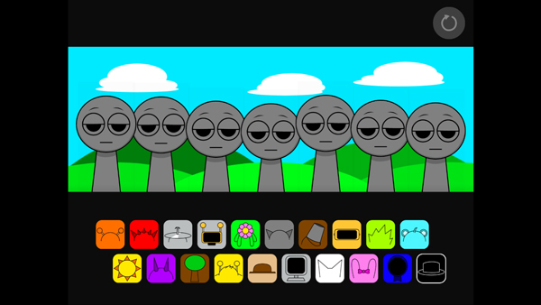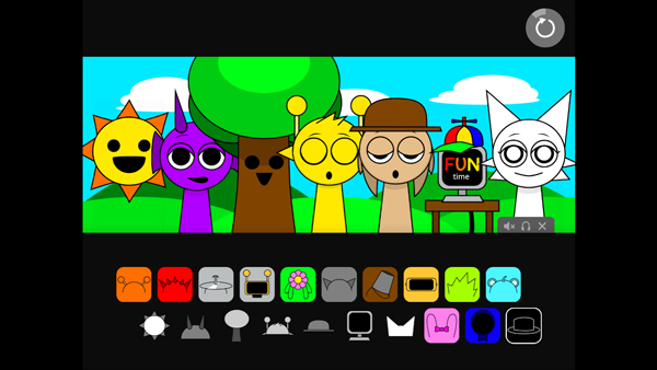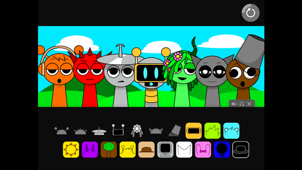 1、打开节奏盒子Sprunki最新版本,进入游戏后,点击右下角黑色帽子,然后给角色戴上进入模组;