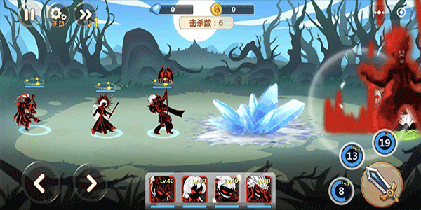 3、与海量的怪物进行战斗,升级你的火柴人,获得更多强大的英雄;