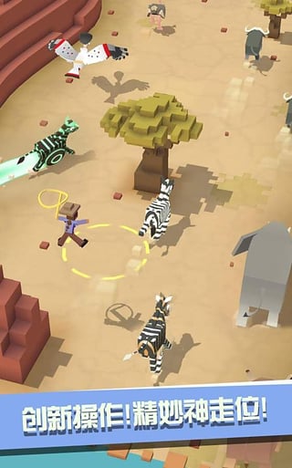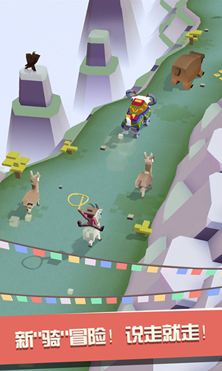 松开手指后,主角便会跳起,再次按下手指,就能跳到套索覆盖位置的动物身上,继续奔跑。