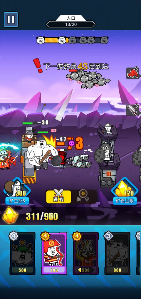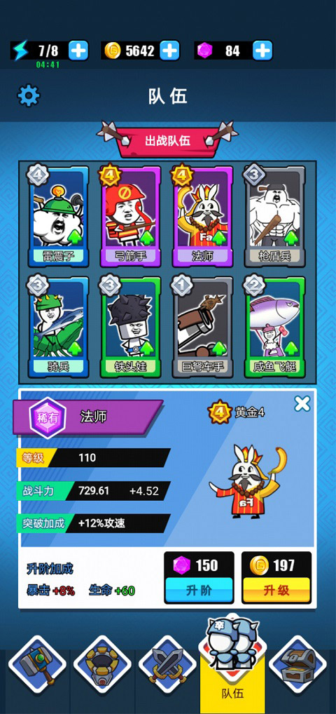 4、放置战斗、兵种随心搭配,玩梗娱乐两不误。