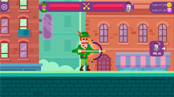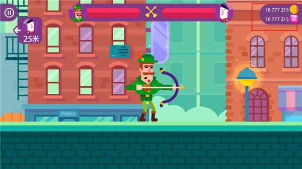 玩法简单,容易上手,玩家上线选择自己喜欢的角色,然后朝对面的人物进行射箭,射中就可以获得胜利,就能赢取钱财,想要获取更好的技能你需要让你的技术变得精湛哦!