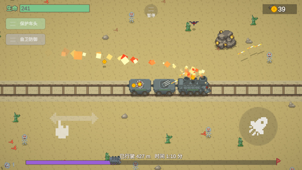 无限列车最新版是一款以末日废土为背景的Roguelike休闲游戏,玩家在游戏中将来到末日时代,你需要驾驶列车独自在黄沙废墟中前行,途中会有很多怪物和强大的BOSS来攻击,你需要升级列车的武器和装甲,以此行驶更长的距离。