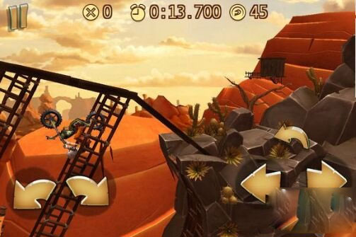 游戏中玩家将驾驶越野摩托在各种复杂车道上纵情驰骋,享受领空翻滚的特级刺激快感。
