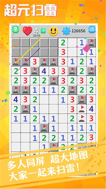 3、游戏的性质简单概括为运气与思维的结合,开创了从未有过的多人同图扫雷玩法。
