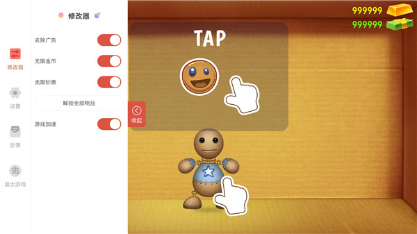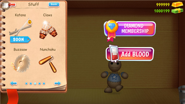 4、不停的打木偶人可以获得钱币,用于破解更多的道具。玩家进入游戏就可以对木偶人做一系列的操作