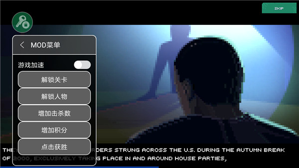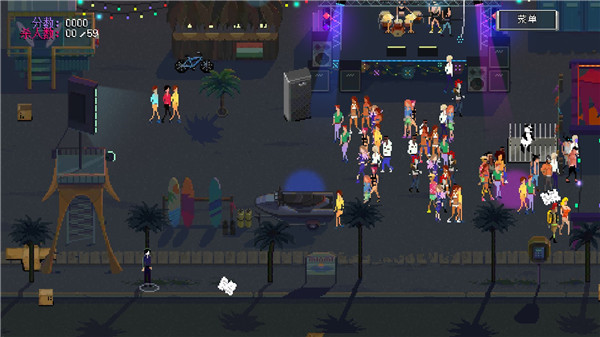 角色扮演像素闯关横版疯狂派对go是一款八十年代迪斯科风秘密谋杀冒险解谜游戏,游戏采用像素风格的画面,色彩背景十分鲜艳,可以为玩家带来视觉上的冲击,同时游戏中的音乐充满了上世纪八十年代迪斯科风,配合着游戏,将带给玩家十分动感的体验。游戏中玩家作为一名喜欢安静的单身人士,决定对在凌晨三点开派对的隔壁邻居发起报复。玩家要潜入派对现场,让那些吵闹的人们永远归于安静。玩家首先要观察好地形环境,之后选择合适的时机从背后暗杀他们,并处理好尸体。在完成任务之后,玩家还要躲避警察的追捕,这样才可以完美的通过关卡。在游戏中,玩家可以选择多种方式进行暗杀,除了可以选择悄无声息的用刀捅以外,玩家还可以选择在冰箱上做手脚使其爆炸,或者是在饮料中下毒,甚至是泼汽油放火。为了达到这一目的,你需要耐心等待、设计陷阱,并在秘密刺杀宾客之后不动声色地融入其它人之中。游戏非常有趣,可以为玩家带来沉浸式的体验感!PS:疯狂派对go内置修改器版,此版本已内置修改菜单功能,包含了破解关卡、破解人物、增加击杀数、增加积分、点击获胜、游戏加速等多种修改功能,亲测有效,喜欢的玩家还在等什么,不妨下载体验一下试试看吧!