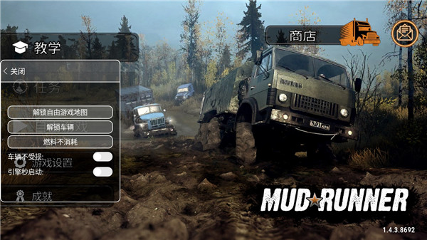 模拟开放世界物理旋转轮胎泥泞奔驰是一款非常好玩的赛车类模拟驾驶游戏。游戏中玩家将扮演一名司机在只有地图和指南针作为向导的条件下挑战操控全地形车辆并冒险横穿西伯地亚的极端环境,而且游戏内当面对泥泞的土壤,湍急的河流和其他的恶劣地形等,玩家需要根据载具的重量和行驶速度而做出真实反映,来避免车辆遭受破坏。同时,还游戏还为玩家们带来了19台马力十足的全地形车辆以及15个开放世界地图供玩家们自由挑选体验,并且该游戏还采用Havok物理引擎模拟出了游各种逼真艰难的地貌并完美再现了野外泥泞场景的超真实和完美地图,从而给玩家们带来了沉浸式的驾驶模拟体验。不仅如此,这款游戏还支持动态昼夜循环系统以及身临其境的沙盘游戏环境,同时更是能够驾驶并征服超赞的全地形载具在流、森林、沼泽、山脉等各种极限环境中冒险享受无与伦比的越野体验!PS:旋转轮胎泥泞奔驰手游破解版,该游戏已完成破解且是最新版本,游戏内自带的mod菜单可修改破解车辆、燃料不消耗、车辆不受损等多项游戏内容并支持中文!有这款游戏感兴趣的玩家们欢迎前来本站免费下载游玩~