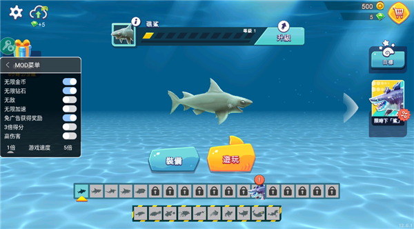 饥饿鲨进化国际服是一款动作游戏,饥饿鲨进化国际服破解版是国际服版本饥饿鲨进化的最新破解版,破解了游戏无限金币、无限钻石,可以任意购买强大的鲨鱼,并升级进化,同时具备开发者内置菜单,一键破解无敌等强大功能,享受极致的鲨鱼杀戮!