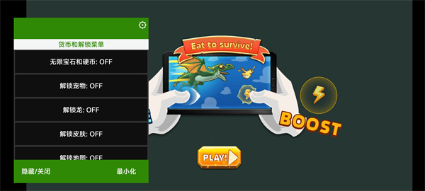 PS:饥饿龙内置作弊功能菜单版,该版本已经内置了作弊菜单修改器,使用该修改器可以让你拥有无限的金币钻石和无限的血量及能量,让你零氪金就可以获得超多的游戏福利,享受超爽的游戏乐趣。