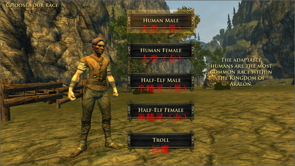 玩家进入游戏时,首先将会进行人物的创建和角色的选择。游戏中,可供玩家选择的种族一共有3种:
