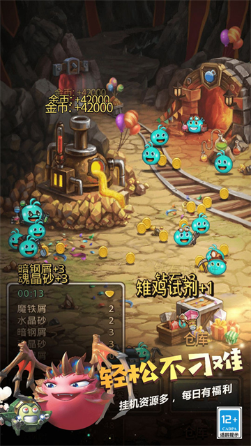 在这里养崽不愁升级困难,养成资源获得方式轻松又有趣:好友赠礼,日常扫荡、探索小队、钻石等福利彩蛋...再加上游戏设有大量的放置玩法,300个工匠为你日夜打工,官方动不动就发密令,只为让你每日都有福利拿!