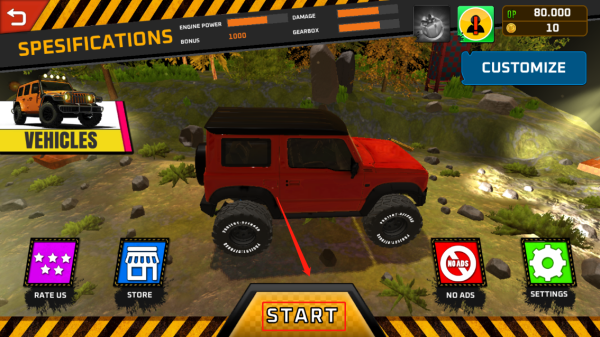 - 通过完成关卡赚取奖励,并使用它们在游戏中购买新的越野车。