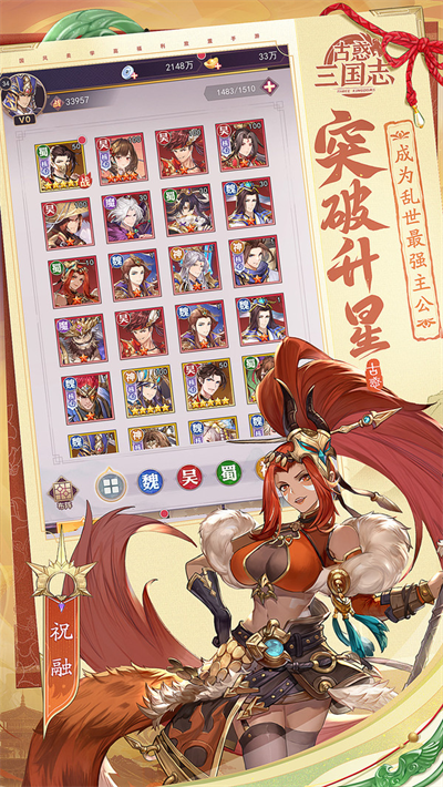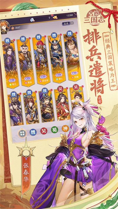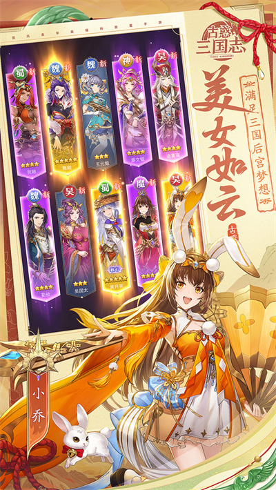 爱与和平一样可以统治三国!战场之外,亦是战场,如何管理自己的后宫团,是一门大学问。除了耳熟能详的貂蝉、关银屏、黄月英、张春华、吕灵雎,还有充满异域风情的卑弥呼、马云禄、辛宪英、祝融,《古惑三国志》满足你的所有喜好!