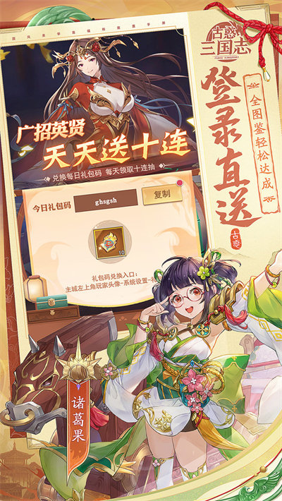 三国游戏需要啥?大把福利闯天涯!《古惑三国志》推出永久终生福利,每天游戏送十连,让每一个主公霸气横行三国世界!有了它,关羽张飞皆兄弟;有了它,大乔小乔锁春深;有了它,孔明与我谈阔论,曹操同我煮青梅。天天送十连,这个三国真的可以为所欲为!