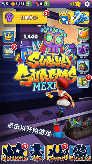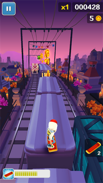 地铁跑酷国际服墨西哥万圣节版本是一款全新的以墨西哥地图为主题,充满了万圣节氛围的地图跑酷游戏,游戏中包含了全新的场景和跑酷玩法,解锁了大量的万圣节专属人物和相关的隐藏道具,比如鬼魂床单、杰克南瓜头、飞天女巫和其他万圣节标志性人物,玩家可以利用这些道具和人物特性获取更多的金币和排名,提升自己的跑酷技术!同时游戏中还有限时的阶段性任务,每次刷新排名都可以增加相应的经验,赢得对应的等级奖励,独特的排名系统,可以在其中看见您在好友中的排名位置以及全球排名,感兴趣的玩家们可以赶紧下载,为赢得更高的名次而全力以赴吧!