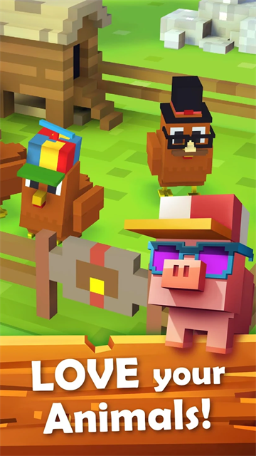 方块农场(Blocky Farm)是一款农场经营模拟游戏,采用色彩清新的像素画风,让玩家可以自由轻松的穿梭在田野农场之间,而且玩法十分多样,玩家在农场中不仅可以开拓农田种植各种作物获取金钱以及经验提升玩家等级,还提供了大量了现代化农业工具来简化工序,只需开着收割车便能大片大片的收成!而且通过完成各种挑战解锁更多建筑以及玩法,并且随着玩家不断的进行游戏,还可获取各种宠物玩具和装饰,来不断提高宠物的好感度并且打扮专属于自己的独一无二的宠物。