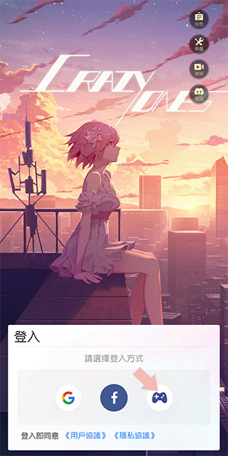 2、之后在下方选择任意一种登录方式,如果想以游客模式登录点击最后一个按钮即可(游客账户可在进入游戏后再绑定相应账户)