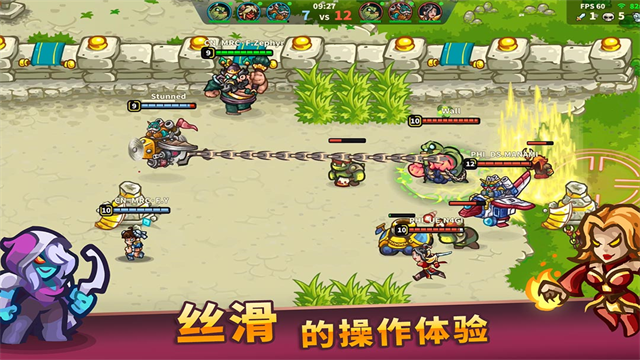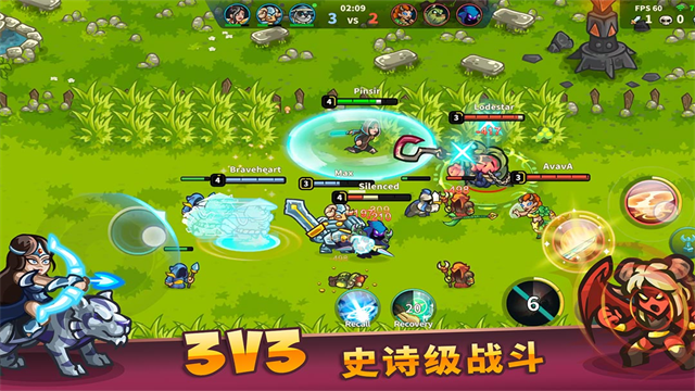 3、游戏采用水平地图单程推塔模式,摧毁敌人基地并获胜。它还拥有MOBA核心系统,如英雄级增长和装备。