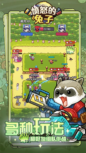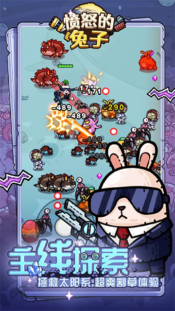 愤怒的兔子手游是一款轻度Rougelike风的动作割草类游戏。为抵御外来者的入侵,愤怒的兔子们决定团结起来,组成兔子军团,展开一场激烈的反击战,踏上寻找回家之路、保卫家园的冒险之旅。愤怒的兔子中你将成为最强特工回到太阳系,清除外星生物,重建人类家园,探索未知地域,解锁各种隐藏关卡和谜题,不断提升自己的实力,使用不同类型的加成和武器搭配,打败敌人,尽享割草快感。
