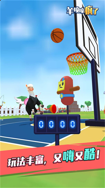 操控羊喷喷,在悬空的场地上将其他疯羊打下悬崖去,让自己存活到最后;