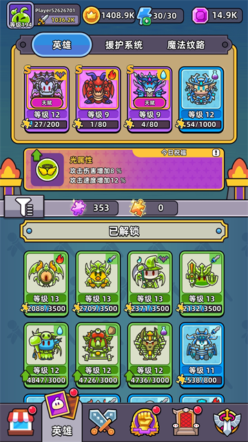 3、不断合成,去升级角色,各种不同技能完美组合,乐趣无限。
