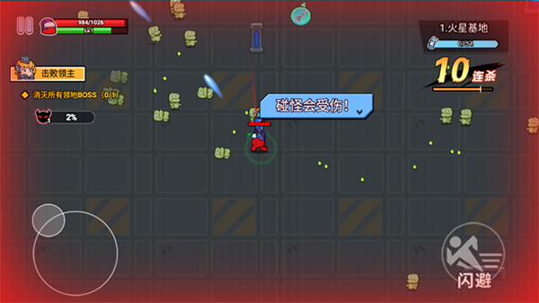 2、游戏中注意走位哦,不然碰到敌人会掉血量;