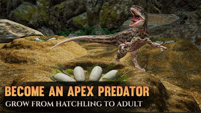 通过完成任务和杀死其他人,以幼崽的身份开始生活并成长为成年。增强力量和力量以应对更大的生物和更大的挑战。当您在世界上留下自己的印记时,看着您的恐龙无缝地长出它们的角、板、刺和牙齿!