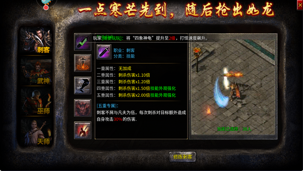 刺客以“潜行术+突袭术”隐身瞬杀,配合“癫狂刺术”三秒收割