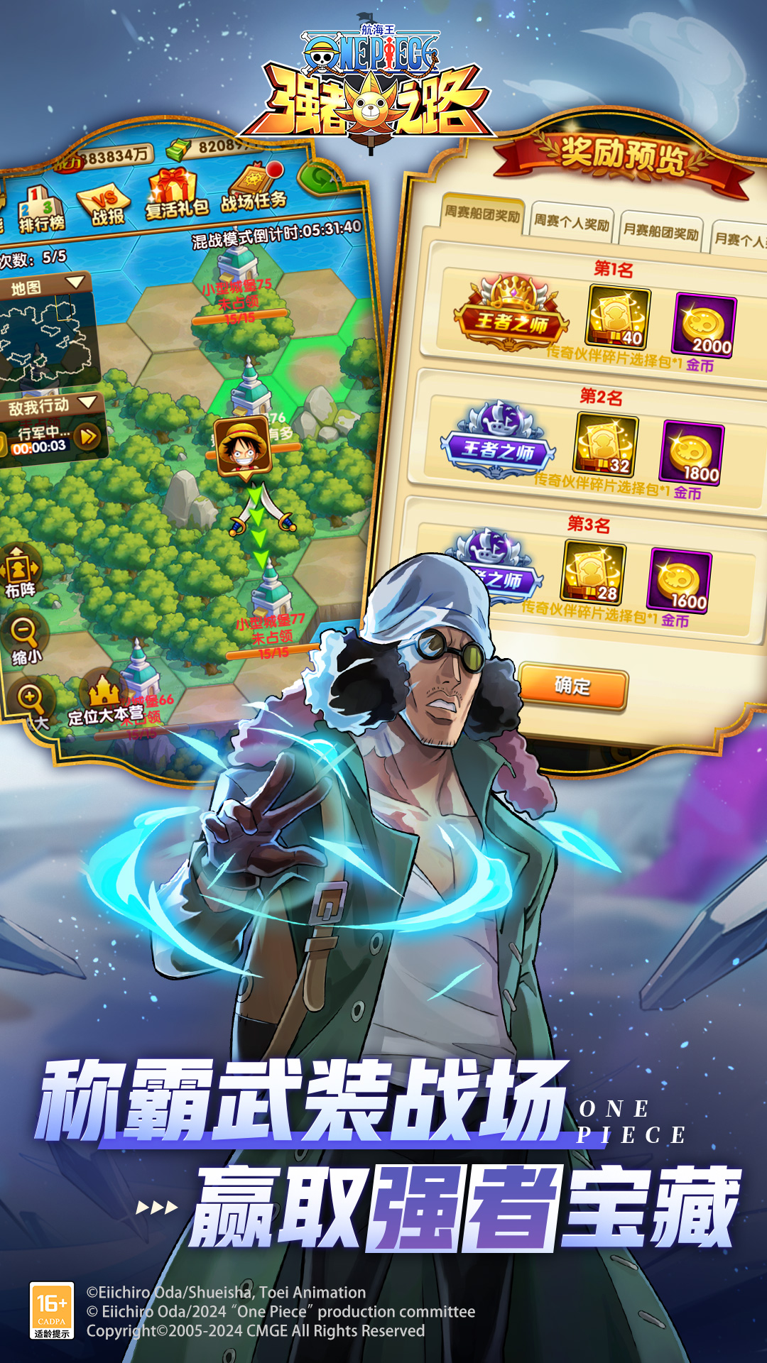 立即下载 大小: 点击:13次 航海王强者之路 卡牌 回合制 策略 奇幻 动漫改编 冒险 动漫 日系 支 持:安卓手机 分 类:鸿蒙游戏 大 小:1832.6 MB 版 本:出发吧,成为我的伙伴! 点击量:13次 发 布:2025-08-12 手机扫码免费下载 #截图 #简介 《航海王强者之路》是一款由ONE PIECE动画正版授权的策略卡牌回合制手游,玩家将化身船长,和路飞一起踏上航海之旅,在这里不仅可以重温《ONE PIECE》中各种IP经典名场面,还能招募伟大航路上各路强者,组建你的航海团;除此以外,更有海上争霸、巅峰对决、英雄争锋等众多跨服对抗活动等你参与,快来和其他船长一起竞争“航海王”称谓,登上伟大航路,让自己的名字传遍世界每一个角落吧!超多福利送不停,快快上船,下一个航海王就是你!